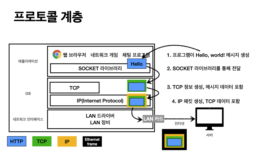- 네트워크 인터페이스 계층(랜카드, Mac등) (마지막 포장)